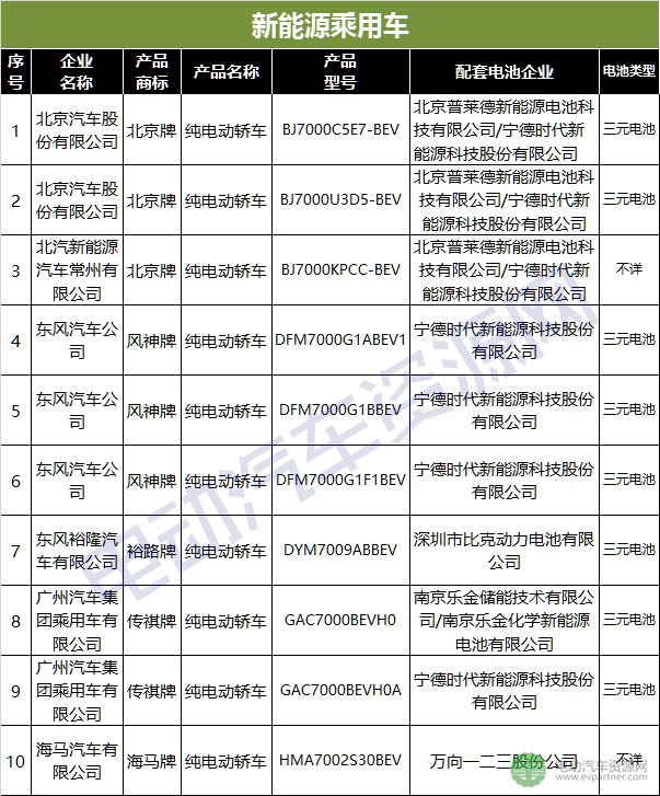 根據(jù)電動(dòng)汽車(chē)資源網(wǎng)統(tǒng)計(jì),本次申報(bào)的23款新能源乘用車(chē)中,有9款車(chē)型由寧德時(shí)代配套動(dòng)力電池,占比39%。詳細(xì)分析情況如下: