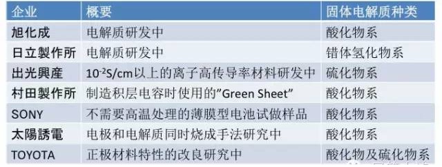 下面對(duì)日本企業(yè)的全固體電池研發(fā)狀況做個(gè)小結(jié):