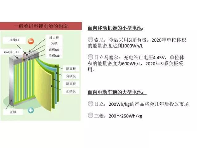 索尼主要研發(fā)如手機(jī)等移動(dòng)便攜電子產(chǎn)品的鋰電池,估計(jì)2016年單位體積的能量密度可以達(dá)到750?800Wh/L,然后經(jīng)過(guò)900Wh/L,到2020年預(yù)計(jì)可以達(dá)到1000Wh/L。能量密度的提高,可以大幅增加智能手機(jī)App的應(yīng)用范圍和數(shù)量,并可以延長(zhǎng)待機(jī)與使用時(shí)間?,F(xiàn)在索尼公司表示,已經(jīng)實(shí)現(xiàn)了鋰電池的最大充電電壓為4.45V,放電電壓為3.0V,使用的材料和現(xiàn)行版電池一樣,正極是LiCoO2,負(fù)極是碳素材料。