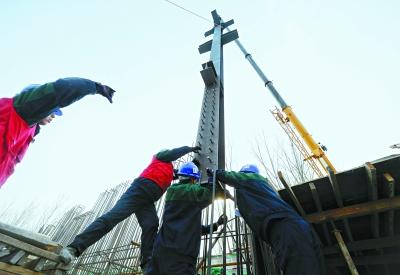 2月16日天上午,永定河北岸張華110千伏變電站進入主體鋼結(jié)構(gòu)裝配施工階段