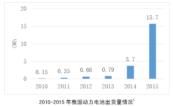 2014年以來,隨著新能源汽車產(chǎn)量的快速提升,車用鋰動力電池的需求持續(xù)爆發(fā),據(jù)高工鋰電數(shù)據(jù)顯示,2015年我國動力電池出貨量達到15.7GWh,同比增長3.24倍。從近5年的出貨量趨勢來看,2014年以前動力電池出貨量一直低于1GWh,2014年首次突破了3GWh,市場開始進入爆發(fā)期,這與我國新能源汽車市場的發(fā)展趨勢密切相關。