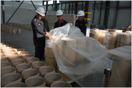 檢驗(yàn)檢疫工作人員現(xiàn)場進(jìn)行檢驗(yàn)。