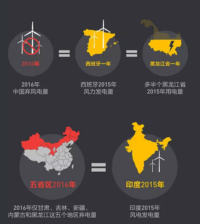 這組數(shù)字的比較,更讓我們對棄風(fēng)造成的損失感到震驚:2016年中國浪費(fèi)的風(fēng)電,就可以供一個(gè)大城市用一整年。棄掉清潔的風(fēng)電,不僅造成了風(fēng)電企業(yè)的經(jīng)濟(jì)損失,也大大削弱了其他領(lǐng)域節(jié)能減排、污染防治的效果。