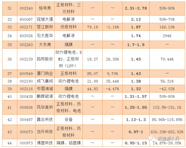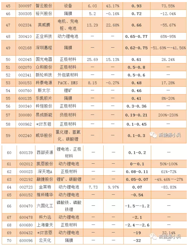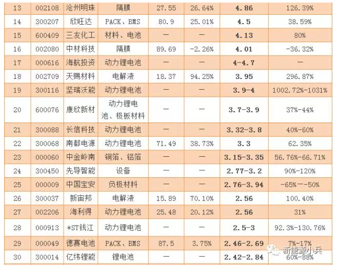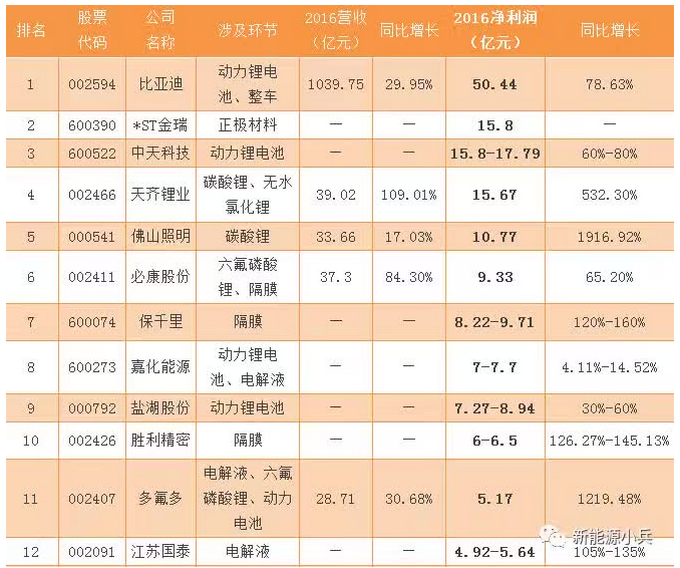在70家已發(fā)布業(yè)績預(yù)告的企業(yè)中,凈利潤排名前10的鋰電上市公司分別是比亞迪、*ST金瑞、中天科技、天齊鋰業(yè)、佛山照明、必康股份、保千里、嘉化能源、鹽湖股份、勝利精密。