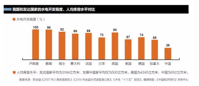 為何“優(yōu)先和充分開(kāi)發(fā)水能”如此重要?一是風(fēng)電太陽(yáng)能和水能是“絕好搭檔”。前者的“間歇性”缺陷可通過(guò)水能彌補(bǔ),變成穩(wěn)定的優(yōu)質(zhì)能源。風(fēng)電太陽(yáng)能高速增長(zhǎng)已導(dǎo)致我國(guó)電力系統(tǒng)當(dāng)前電網(wǎng)調(diào)峰能力嚴(yán)重不足,而歐美國(guó)家充分開(kāi)發(fā)的水能恰好成了風(fēng)能太陽(yáng)能大發(fā)展的“超級(jí)蓄電池”。二是水電水利是密不可分的整體。水電不僅僅是“物美價(jià)廉”的能源,更是人類解決水資源短缺、抵御洪旱災(zāi)害無(wú)法替代的工程手段。水電開(kāi)發(fā)程度也并不存在什么“國(guó)際警戒線”,發(fā)達(dá)國(guó)家的水電開(kāi)發(fā)程度和人均庫(kù)容水平遠(yuǎn)遠(yuǎn)高于我國(guó)。