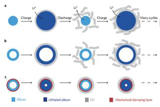 但是,SEI在形成過程中消耗了部分鋰離子,使得首次充放電不可逆容量增加, 降低了電極材料的充放電效率。在循環(huán)過程中,SEI不斷的增長,消耗電解液,會造成容量的加速衰減。