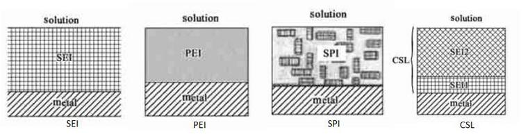 對于這些有機(jī)/無機(jī)組分的構(gòu)成形態(tài)及作用,文獻(xiàn)里也提出了各種各樣的模型,包括SEI/PEI/SPI/CSL等。不同的模型提出了不同的電化學(xué)模擬簡化原則,在電化學(xué)等效電路中被當(dāng)做不同的R/C電路。具體可以參見相關(guān)的電化學(xué)書籍和文獻(xiàn)。(好吧,其實(shí)是我也看不懂)