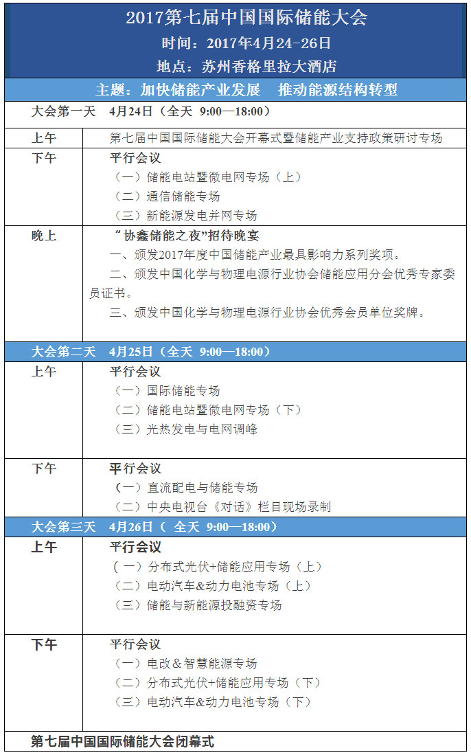 本次大會將設置產業(yè)政策、儲能電站、國際儲能、分布式光伏與儲能系統(tǒng)、新能源發(fā)電并網、電改及智慧能源、新能源汽車與動力電池、光熱發(fā)電與電網調峰、通信儲能、投融資等多個專場分論壇。重點邀請來自國內外的政府主管部門、科研機構、電力公司、發(fā)電集團、業(yè)主單位、儲能系統(tǒng)集成商、投融資機構及相關制造企業(yè)出席本次會議。