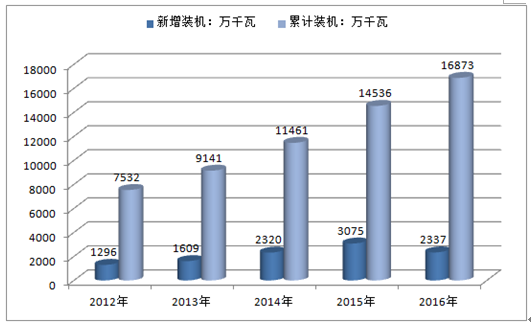 2012-2016年全國(guó)風(fēng)電裝機(jī)容量情分析