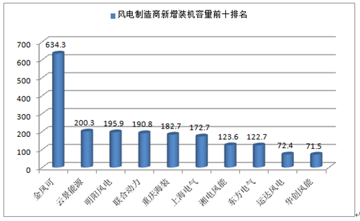2016年風(fēng)電制造商新增裝機(jī)容量前十排名分析