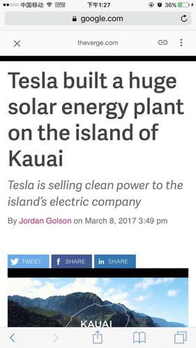 與特斯拉合作的當(dāng)?shù)仉娏颈硎?,該?xiàng)目未來每年能為他們減少160萬加侖的化石燃料使用量。另外,考艾島并沒有完全選擇從特斯拉那里購置太陽能面板和電池系統(tǒng),而是選擇購買電力。雙方已經(jīng)簽訂了為期20年的合作。