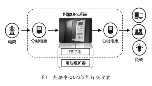 首先,作為儲能應(yīng)用的UPS須先擴容電池組,讓全電池組參與儲能。電池容量的設(shè)計一定要保證60%作為儲能來用,剩余的40%作為UPS后備供電,如此才能讓電源充分滿足用戶的剛性用電需求。這套設(shè)計方案改造工程量小,系統(tǒng)收益率高,特別適用于數(shù)據(jù)中心、大型商業(yè)體。數(shù)據(jù)中心UPS儲能解決方案如圖1所示。