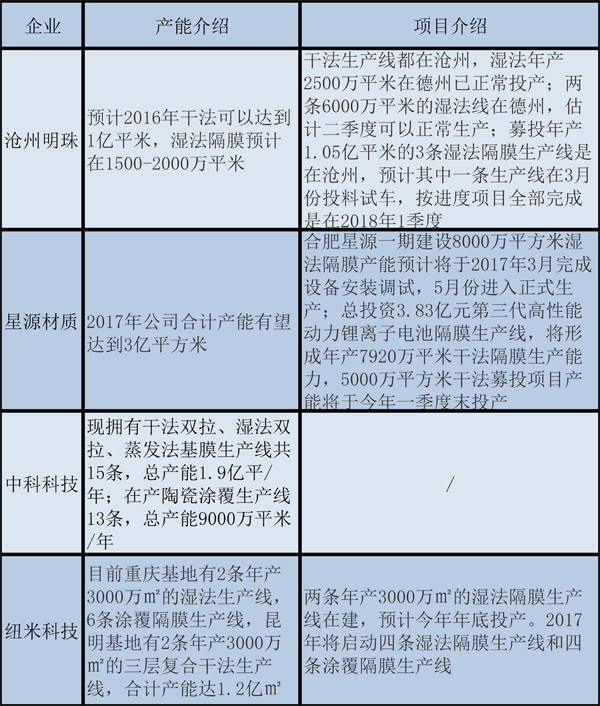 1.老牌隔膜企業(yè):滄州明珠、星源材質(zhì)、中科科技