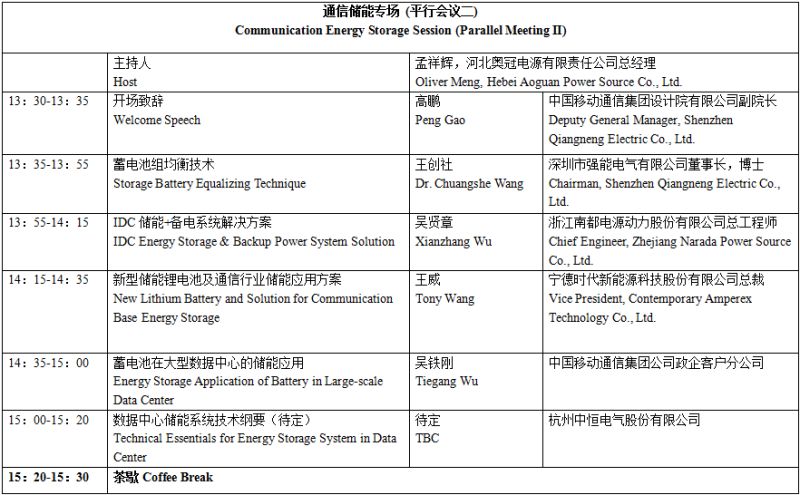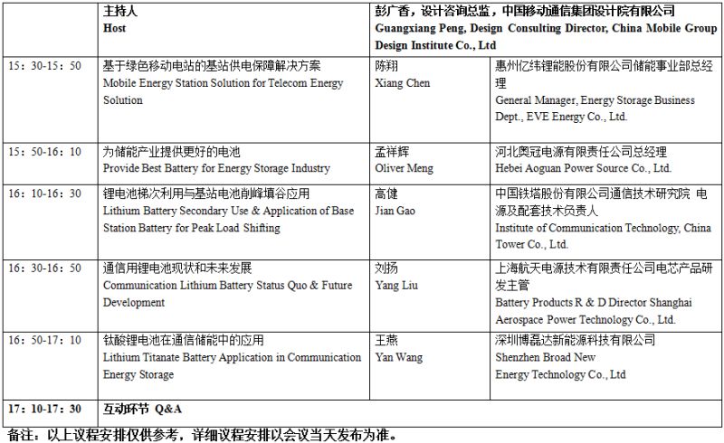以下為通信儲能專場具體議程安排。