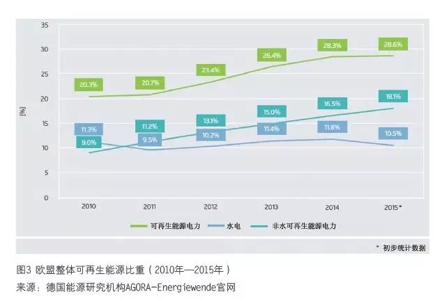 (2)2005 年—2015 年十年間,美國的風電份額從幾乎可以忽略,上升到接近5%。同期, 其總用電量2015 年幾乎回到了2005 年的水平(見圖2)。電力需求已經(jīng)飽和,甚至略微下降。這是風光等可再生能源快速在電力結(jié)構(gòu)中擴大份額的機會,而不是障礙。
