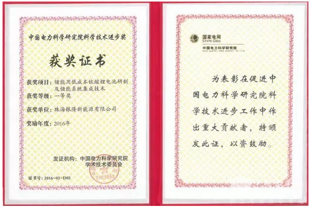 中國(guó)儲(chǔ)能網(wǎng)訊:3月22日中國(guó)客車網(wǎng)獲悉,銀隆新能源與中國(guó)電力科學(xué)研究院、中國(guó)科學(xué)院物理所合作的科學(xué)技術(shù)項(xiàng)目《儲(chǔ)能用鈦酸鋰電池及儲(chǔ)能系統(tǒng)研制》中憑借儲(chǔ)能用低成本鈦酸鋰電池研制及儲(chǔ)能系統(tǒng)集成技術(shù)榮獲中國(guó)電力科學(xué)研究院科學(xué)技術(shù)進(jìn)步獎(jiǎng)一等獎(jiǎng)。