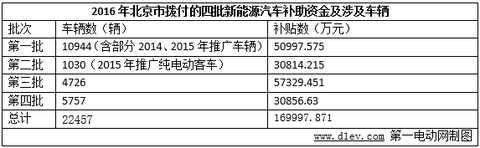 2016年北京市共撥付四批新能源汽車補(bǔ)助資金共涉及22457輛車,撥付資金約17億元。其中北京本地車企(北汽、北京現(xiàn)代及北汽福田)涉及的9739輛車補(bǔ)貼資金約9億元,比亞迪、江淮等8家外地新能源車企的12718輛獲得補(bǔ)貼約8億元,補(bǔ)貼資金占總額的47%。