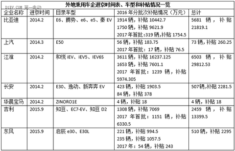 3月21日,北京市經(jīng)信委稱,2017年北京市擬撥付第一批新能源汽車補(bǔ)助資金共涉及4066輛,擬撥付資金51789.135萬元。在純電動乘用車方面,奇瑞汽車、吉利汽車、眾泰汽車、東風(fēng)汽車、比亞迪、江淮汽車、上汽七家企業(yè)的3368輛車將分約1.7億元補(bǔ)貼。