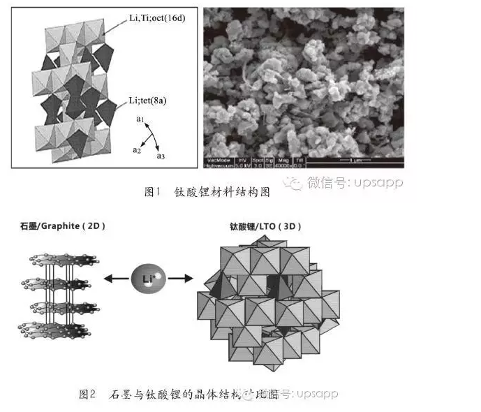 鈦酸鋰材料具有三維擴(kuò)散通道,在Li+脫嵌過(guò)程中,其晶格體積基本不發(fā)生形變,其結(jié)構(gòu)為L(zhǎng)i+提供了足夠暢通和快速的遷移,鈦酸鋰材料具有三維擴(kuò)散通道,不存在因形變帶來(lái)的應(yīng)力應(yīng)變和結(jié)構(gòu)塌陷,從而使鈦酸鋰材料具有更長(zhǎng)的循環(huán)壽命。從化學(xué)反應(yīng)特性來(lái)看,鈦酸鋰能夠在大倍率下進(jìn)行快速脫嵌鋰過(guò)程(既能快充也能快放)。圖1為鈦酸鋰材料結(jié)構(gòu)圖。圖2為石墨與鈦酸鋰的晶體結(jié)構(gòu)對(duì)比圖。