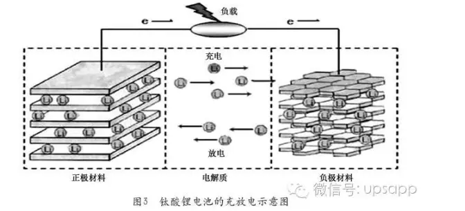 由此可見(jiàn),鈦酸鋰電池基本原理,就是在充、放電的過(guò)程中,對(duì)應(yīng)的鋰離子在正負(fù)極之間來(lái)回的嵌脫,完成電池的充放電和向負(fù)載的供電。鈦酸鋰電池的充放電示意圖如圖3所示。