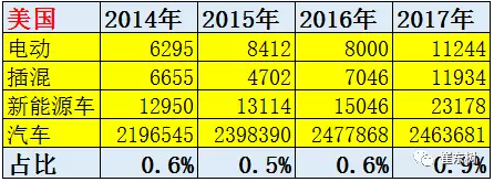16年以來的中國純電動(dòng)車發(fā)展較快,插電混動(dòng)的走勢稍慢。17年1-2月中國插混銷量是新能源車的四分之一。而美國插混是一半。