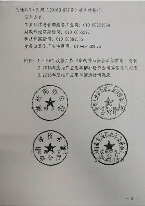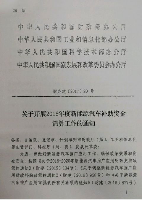 中國儲能網(wǎng)訊:3月23日,車企齊聚一堂,集體向中汽協(xié)“告狀”,要求解決新能源汽車“3萬公里”一刀切政策。3月27日,傳言中的消息正式落地。車企們在中汽協(xié)的“申訴”沒有得到任何結(jié)果。一份標(biāo)有“加急”字樣的文件在大小汽車媒體上陸續(xù)發(fā)布出來。這份文件,正是由財(cái)政部、工信部、科技部、發(fā)改委等四部委于3月20日聯(lián)合會簽的《關(guān)于開展2016年度新能源汽車補(bǔ)貼資金清算工作的通知》(下文簡稱通知)。