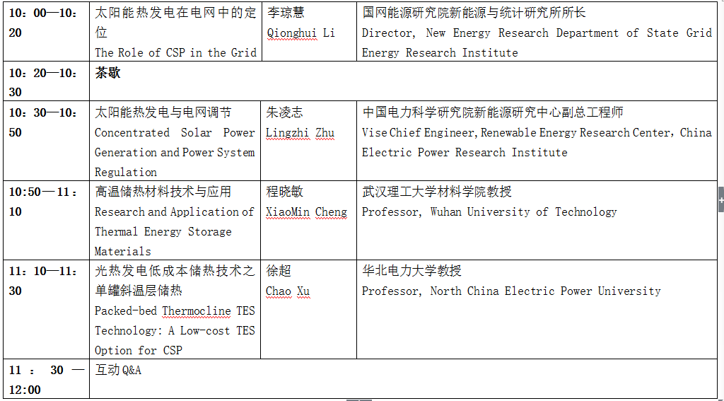 “光熱發(fā)電與電網(wǎng)調(diào)峰”專場(chǎng)議程