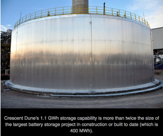 中國儲能網(wǎng)訊:2016年SolarReserve一系列光熱電站開工建設(shè)。項目均包括塔式光熱系統(tǒng)和熔融鹽儲熱技術(shù),儲熱時間長達13小時,可以保證24小時連續(xù)供電。項目計劃于2019年投入商業(yè)化運營。