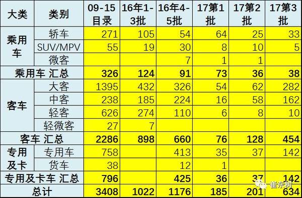 09-15年以前的目錄車型重新進(jìn)入17年第一批目錄僅有2款,第二批有1款。17年第一批目錄的16年1-5批車型有155款,成為此次17年首批補貼目錄的絕對主力。而第二批的16年1-5批車型有65款,新車成為17年前兩批補貼目錄的絕對主力。但第三批目錄的新品數(shù)量較多,達(dá)到568款,老款車型僅有66款。