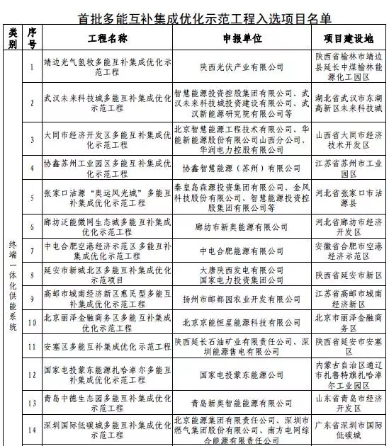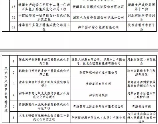 2016年12月國家能源局公布了首批多能互補(bǔ)集成優(yōu)化示范工程入選項(xiàng)目名單