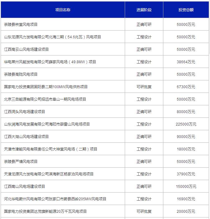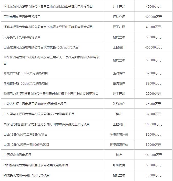 2017年3月份全國擬在建風電項目一覽