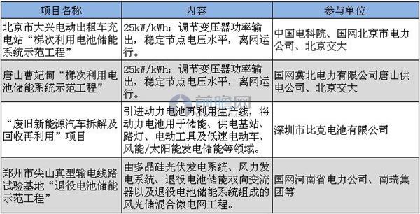 圖表2:國內(nèi)部分動力電池梯次利用項目