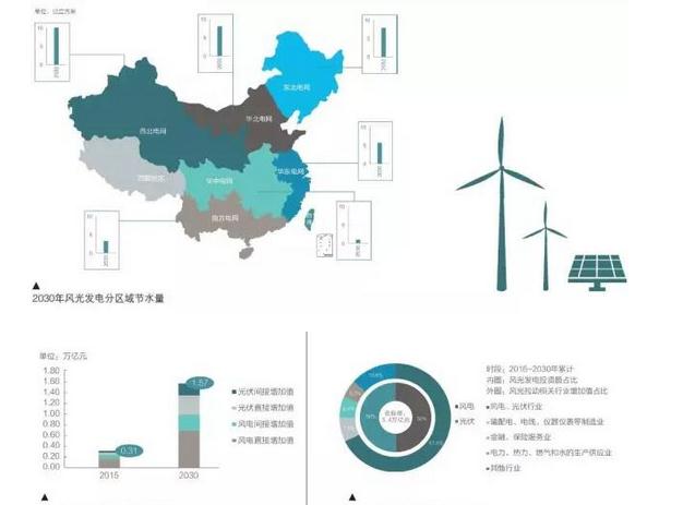 并且中國(guó)的煤炭資源和水資源多呈逆向分布。煤炭的開(kāi)采、洗選和發(fā)電都高度耗水。過(guò)度取水給當(dāng)?shù)氐纳鷳B(tài)環(huán)境和人體健康造成了巨大危害。與此相比,風(fēng)光發(fā)電的用水量要小得多。從全生命周期考慮,風(fēng)電和光伏發(fā)一兆瓦時(shí)的電力,將比燃煤發(fā)電分別節(jié)約用水2.76立方米和1.63立方米。據(jù)此計(jì)算,風(fēng)電和光伏發(fā)電的節(jié)水量將分別從2015年的5.11億立方米、0.62億立方米增長(zhǎng)到2030年的27.05億立方米、8.8億立方米,節(jié)約的水資源相當(dāng)于2億人全年的用水需求。