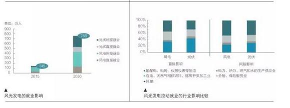 這也意味著到2030年,風(fēng)光發(fā)電帶動(dòng)的總就業(yè)人口數(shù)接近770萬(wàn)人,比2015年增長(zhǎng)4倍多,相當(dāng)于2015年全國(guó)高校畢業(yè)生總數(shù),將產(chǎn)生良好的綠色就業(yè)帶動(dòng)效應(yīng)。