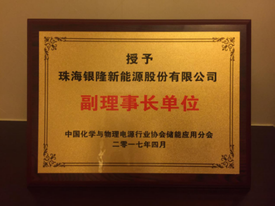 (銀隆新能源被授予為中國(guó)化學(xué)與物理電源行業(yè)協(xié)會(huì)儲(chǔ)能應(yīng)用分會(huì)副理事長(zhǎng)單位)
