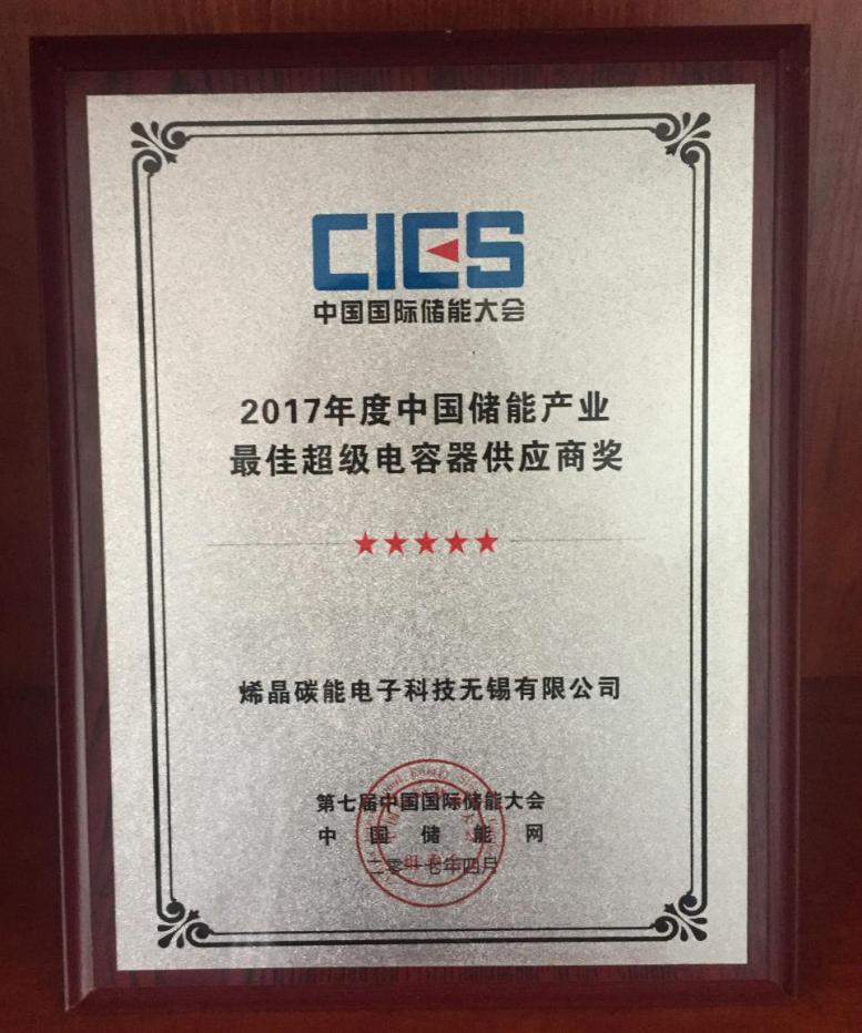 烯晶碳能斬獲2017年度中國儲能產(chǎn)業(yè)最佳超級電容器供應商獎