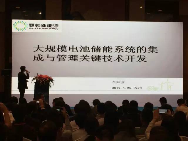 桑頓新能源副總工程師李海波博士受邀主持儲(chǔ)能電站暨微電網(wǎng)專場分會(huì),并且發(fā)表了主題為《大規(guī)模電池儲(chǔ)能系統(tǒng)的集成與管理關(guān)鍵技術(shù)開發(fā)》的演講,展示了桑頓儲(chǔ)能商用進(jìn)展和智慧云平臺體系,提出低成本、長壽命、標(biāo)準(zhǔn)化、高安全、高效率、高能量密度的大規(guī)模電池儲(chǔ)能系統(tǒng)集成開發(fā)與核心技術(shù),并從電池儲(chǔ)能系統(tǒng)的控制體系、管理方式、集中應(yīng)用模式及分布應(yīng)用模式等方面開展研究,對攻克電池儲(chǔ)能系統(tǒng)規(guī)模化集群并聯(lián)、電池健康管理、廣域多點(diǎn)應(yīng)用等難題做了有益探索,獲得了行業(yè)廣泛關(guān)注與強(qiáng)烈反響。