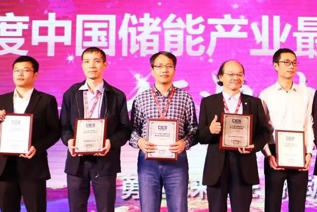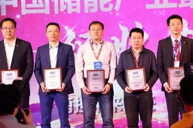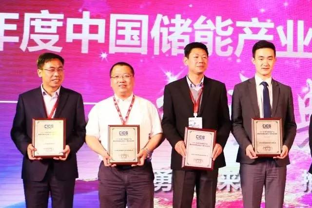 ▲ 總經(jīng)理高運(yùn)奎領(lǐng)取“中國(guó)儲(chǔ)能產(chǎn)業(yè)最具影響力企業(yè)”獎(jiǎng)(中)