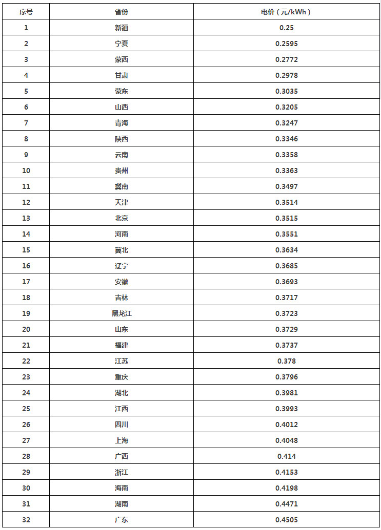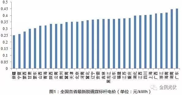 電網(wǎng)收購不同類型發(fā)電企業(yè)電量的價格不同。由于我國火電占65%以上,所以一般參考的基準為脫硫煤標桿電價。全國32個省、市、區(qū)的最新脫硫煤標桿電價如下圖所示。