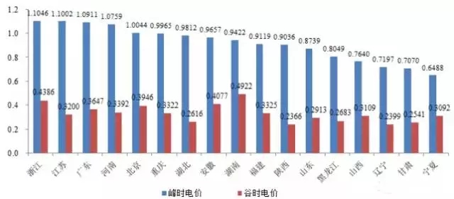 用戶的實際電價按使用時間不同,分為:峰平谷電價。下圖為部分省份的峰、谷電價。