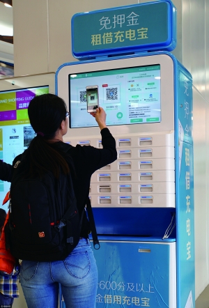 近期,北京各大商圈內(nèi)開始擺放一種機身藍白相間的自助租借充電寶設(shè)備。