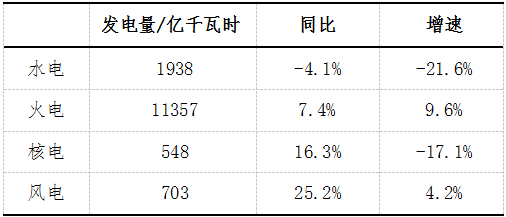 發(fā)電量增速同比提高。3月份,發(fā)電量5168.9億千瓦時,同比增長7.2%;一季度,發(fā)電量14587.2億千瓦時,同比增長6.7%,明顯加快。火電增速加快,水電降幅收窄。3月份,火力發(fā)電同比增長7.7%;受來水情況影響,水力發(fā)電同比下降1.3%。一季度,火力發(fā)電同比增長7.4%,水力發(fā)電同比下降4.1%。核能、風(fēng)力和太陽能發(fā)電保持兩位數(shù)增長。一季度,核能、風(fēng)力和太陽能發(fā)電同比分別增長16.3%、21.8%和31.0%。截至3月底,全國6000千瓦及以上電廠裝機容量16.1億千瓦,同比增長7.7%。其中,水電2.9億千瓦、火電10.6億千瓦、核電3473萬千瓦、并網(wǎng)風(fēng)電1.5億千瓦。