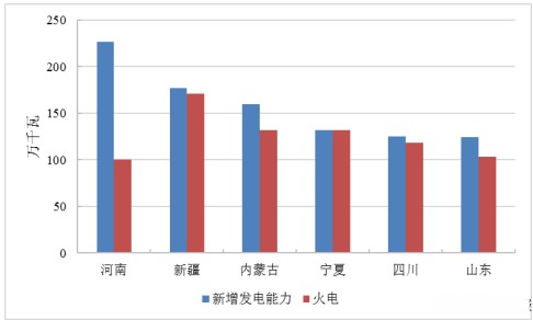 分省份看,新投產(chǎn)電源項目主要集中在河南、新疆、內(nèi)蒙古、寧夏、四川、山東。