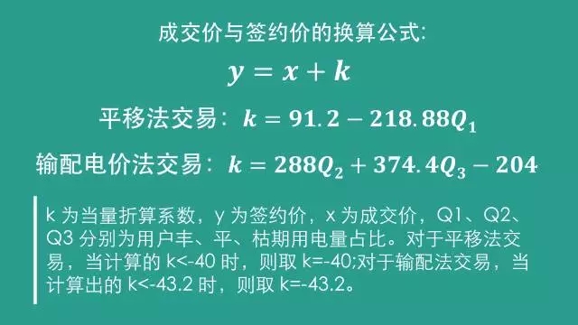 這樣也就產(chǎn)生了一個(gè)豐、平、枯三個(gè)時(shí)間的電量計(jì)算問(wèn)題,公告中給出了集中競(jìng)價(jià)階段平移交易法和輸配電價(jià)法交易的解釋及計(jì)算公式。