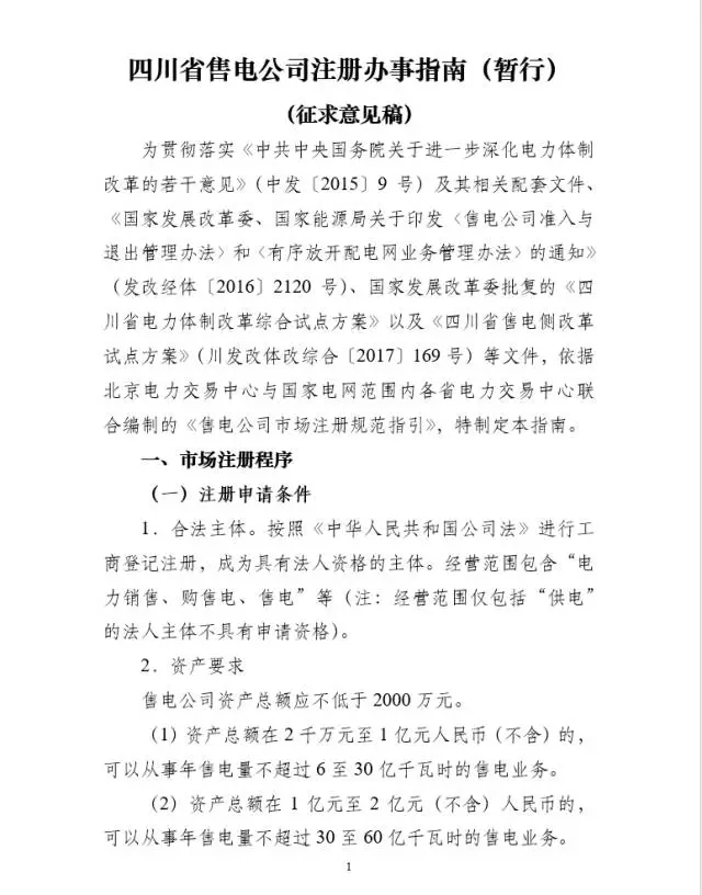 4月26日,《四川省售電公司注冊(cè)辦事指南(暫行)》發(fā)布征求意見稿(文末附文件全文),經(jīng)過(guò)晶見工作室與《售電并公司市場(chǎng)注冊(cè)規(guī)范指引》對(duì)比,發(fā)現(xiàn)其基本沒(méi)有太大的改動(dòng)。
