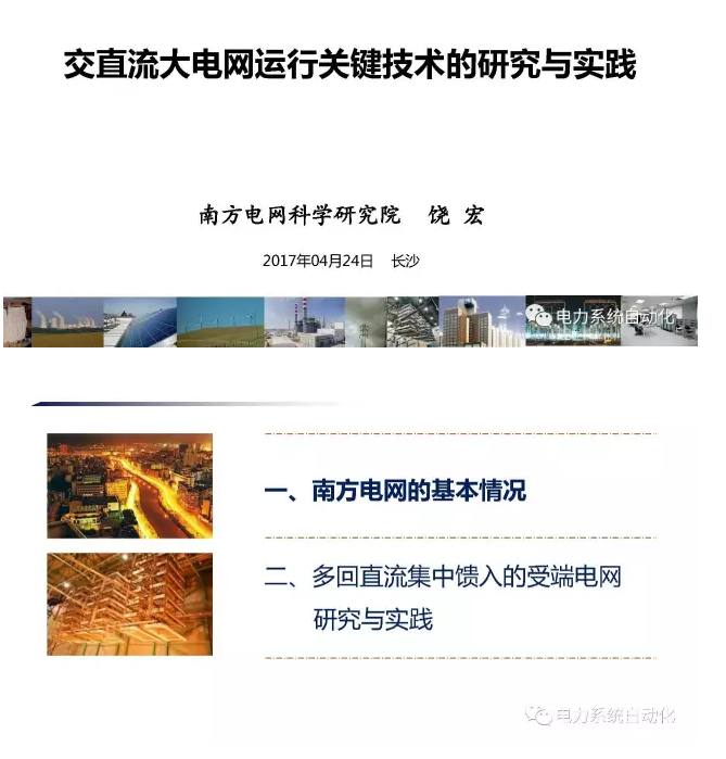 中國儲(chǔ)能網(wǎng)訊:“2017年中國工程院學(xué)部學(xué)術(shù)活動(dòng)——能量“綠色變換”技術(shù)與裝備及其產(chǎn)業(yè)化發(fā)展的瓶頸問題與對(duì)策研討會(huì)”4月24日在長沙舉行,南方電網(wǎng)科學(xué)研究院有限責(zé)任公司饒宏董事長在會(huì)上作了題為《交直流大電網(wǎng)運(yùn)行關(guān)鍵技術(shù)的研究與實(shí)踐》的主題報(bào)告,小編征得饒宏董事長同意,在此分享報(bào)告PPT,歡迎品讀。