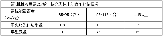 217款非快充類(lèi)純電動(dòng)客車(chē)中有162款車(chē)型的電池系統(tǒng)能量密度超過(guò)了115Wh/kg,可獲得1.2倍補(bǔ)貼;45款車(chē)型電池能量密度在95-115Wh/kg(含)這個(gè)范圍,可獲得1倍的補(bǔ)貼;僅有10款車(chē)型的能量密度小于95Wh/kg(含),只能拿到0.8的補(bǔ)貼。