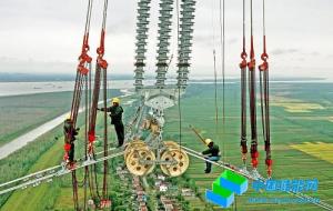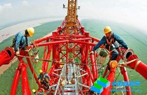 施工人員在新吉陽(yáng)長(zhǎng)江大跨越進(jìn)行附件安裝。