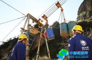 錦蘇特高壓工程在無人區(qū)施工過程中,工作人員通過索道運(yùn)送生產(chǎn)物資。