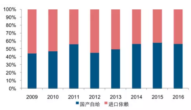 2016 年我國多晶硅進口量占總消費量的 40%以上